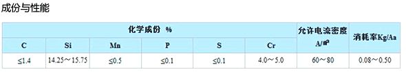 ① 產品介紹 高硅鑄鐵陽極是外加電流陰極保護系統理想的輔助陽極。廣泛用于石油、天然氣、化工廠、自來水公司等地下或水中金屬構筑物的保護與防腐蝕。 ② 化學成份 ③ 常用規格型號 ④ 相關圖片